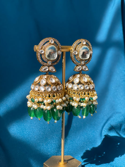These earrings boasts a gold tone base, adorned with premium quality Red Doublet stone. The Bengal tiger design surrounded with American diamonds and kundan are the center of attraction of these earrings, making it a luxurious addition to your jewelry collection.