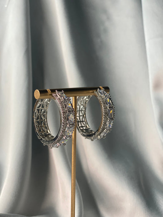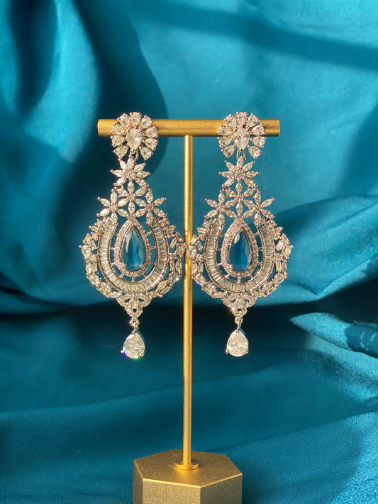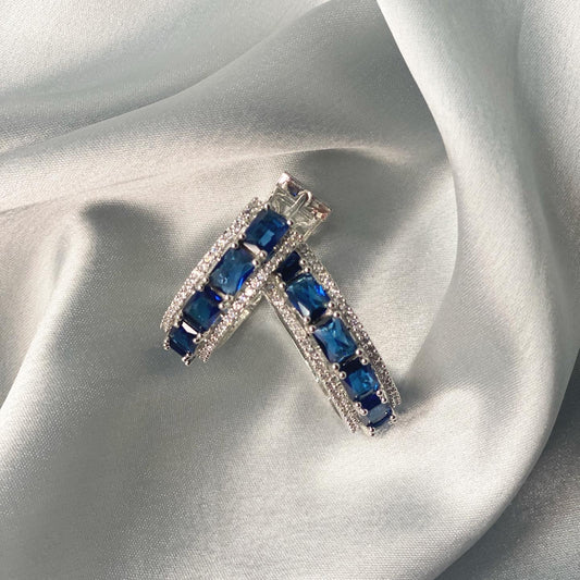 FIZAA American Diamond Hoop Earrings - Sapphire