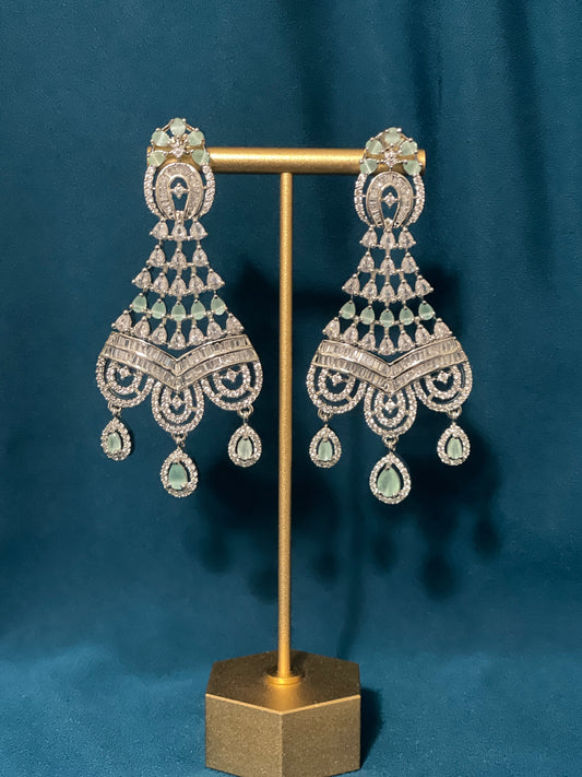 NIHARIKA American Diamond Earrings and Tikka set - Mint