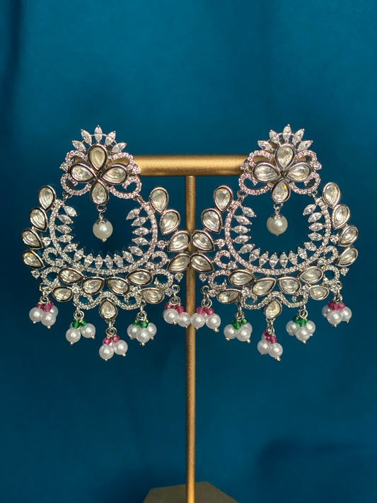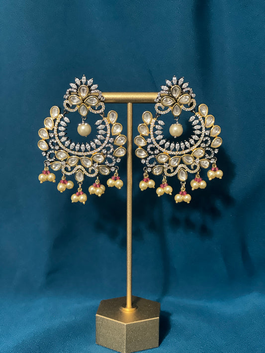 UROOJ Kundan American Diamond Earrings - Dual Tone
