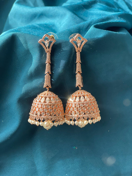 ZAAHIRA American Diamond Jhumka Earrings - Rose Gold