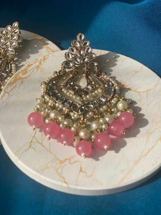 SHAILI Kundan Chandbali Statement Earrings - Rose pink
