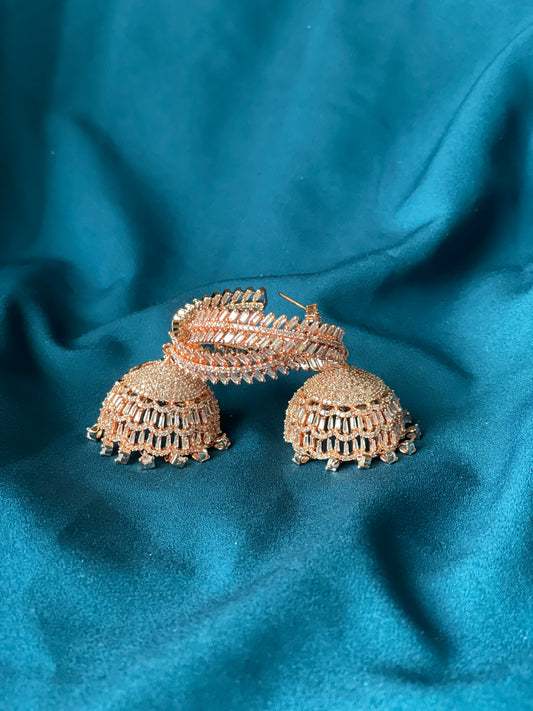 ZAAHIRA American Diamond Jhumka Earrings - Rose Gold