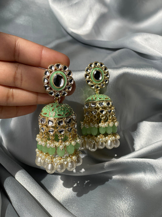 SHAILI Kundan Chandbali Statement Earrings - Mint