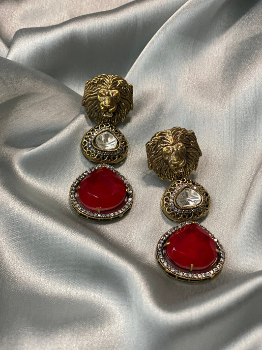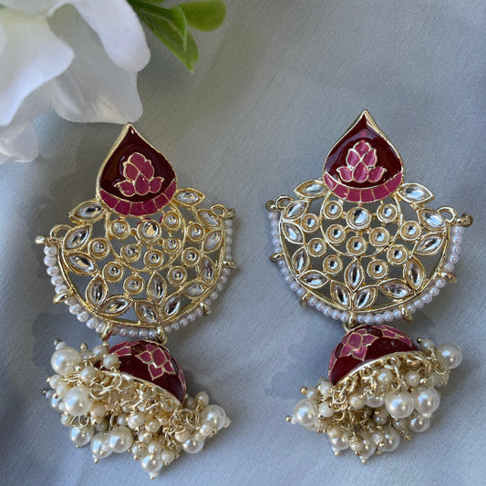 AASHVI Kundan Chandbali Earrings - Ruby red