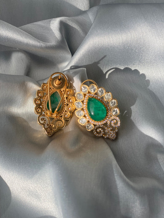 ISHAA Moissanite with Doublet Stones Premium Quality Studs - Emerald Green