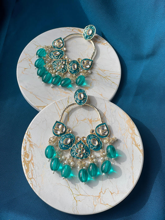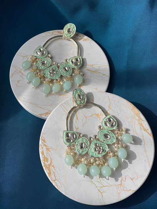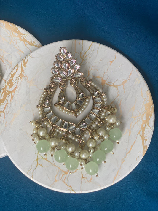 SHAILI Kundan Chandbali Statement Earrings - Mint