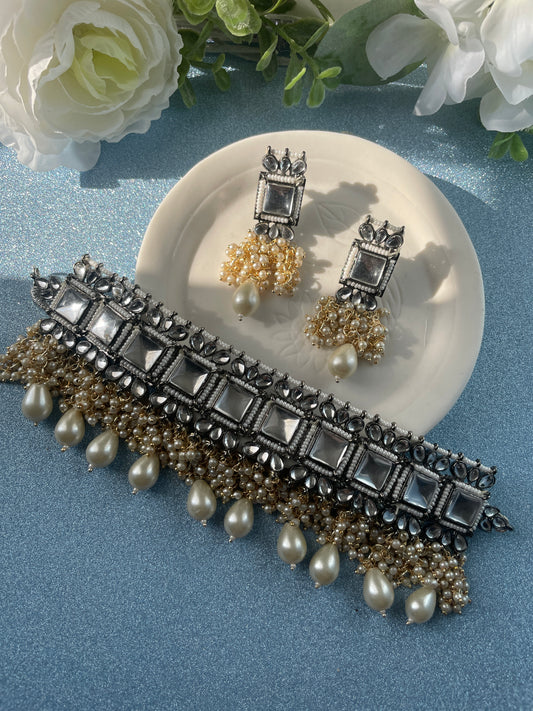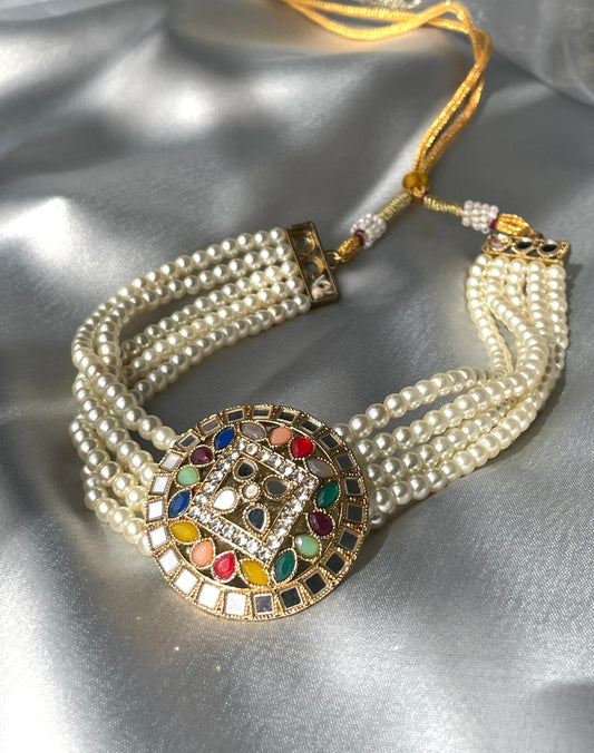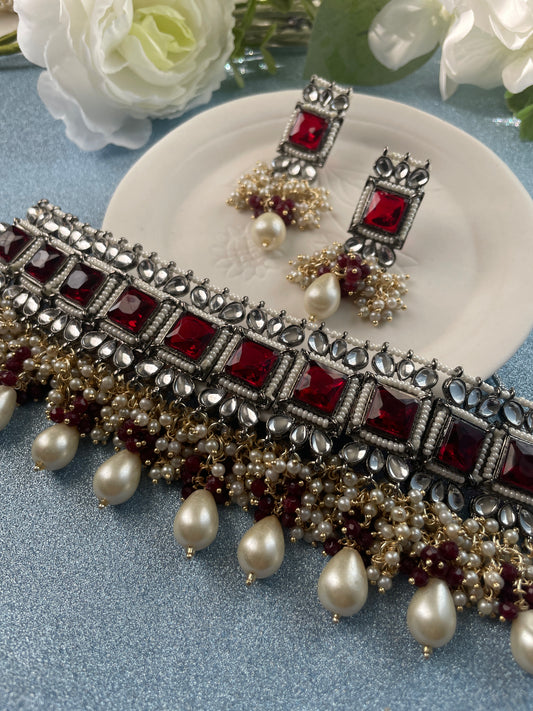 Sold outRAMYA Kundan Pearl Choker Set - Ruby