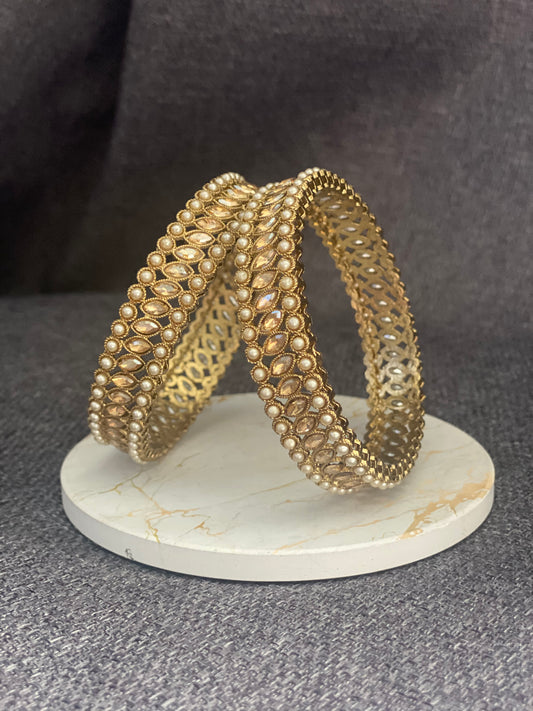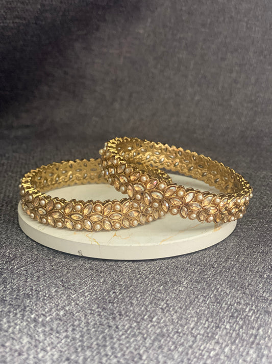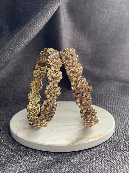AADHYA - Antique Gold polish Polki openable Kada/Bangles