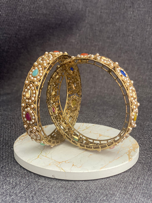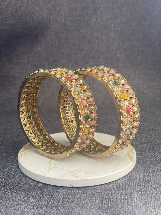 MEENA - Antique Gold polish Polki Bangles in Multi