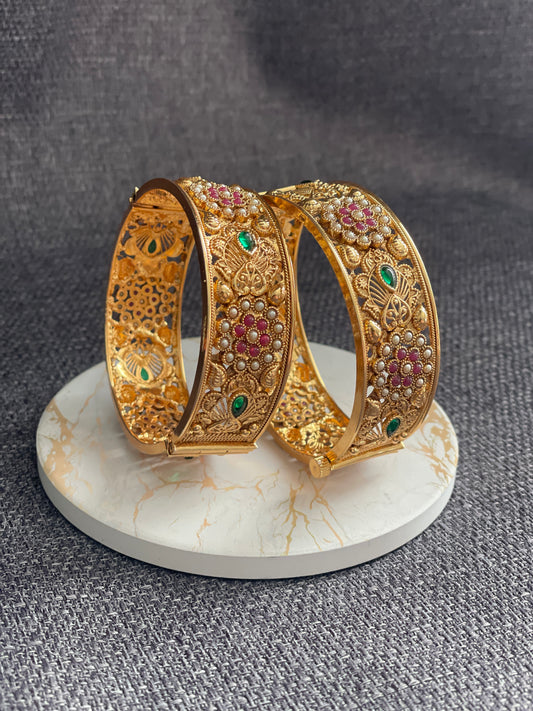 SHASHI - Gold plated Temple style openable Kada/Bangles