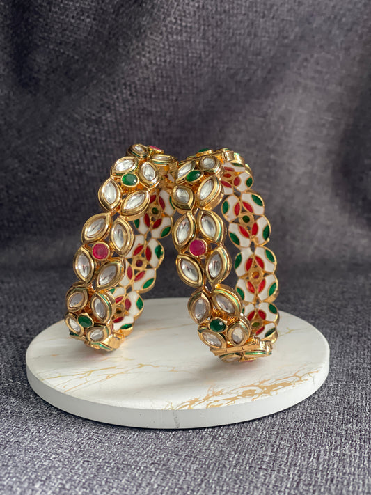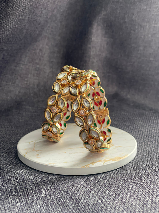 SAROJA - Gold plated Kundan with Meenakari openable Kada/Bangles