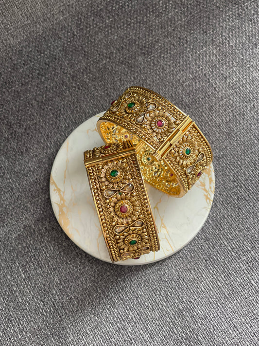 ARAADHYA - Antique Gold polish Polki openable Kada/Bangles